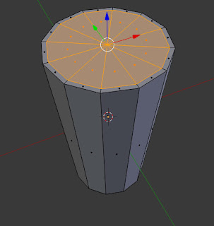 Now rotate view to go to the lower side of the cylinder and then go to vertex selection mode and select the center vertex.Now hold Ctrl and click face select to select connected face and then press S button on the keyboard to scale it down a little bit then left click to conform it.